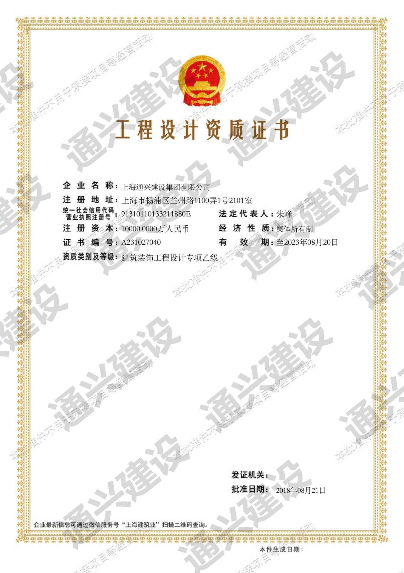 工程设计资质证书